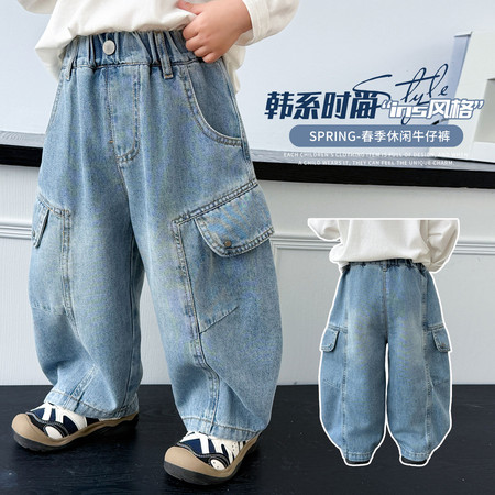 男小童2026春季新款潮酷小弯刀工装宝宝牛仔裤
